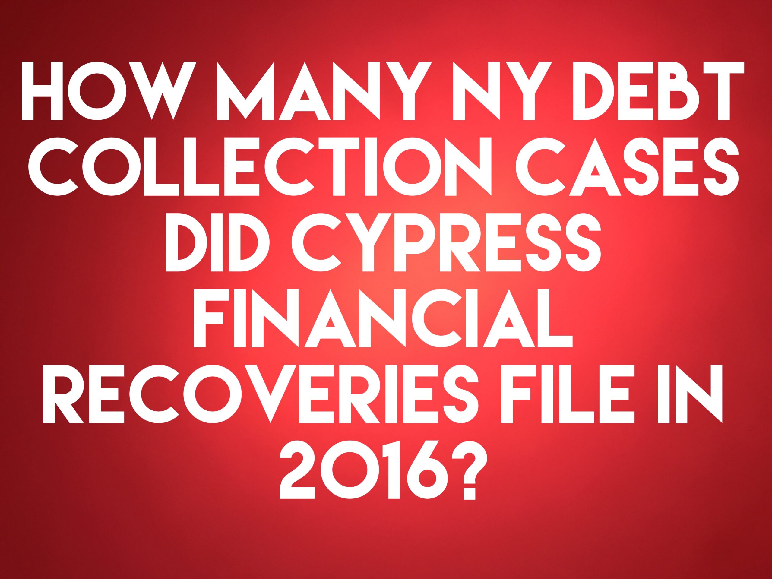 February 8, 2017February 8, 2017 Debt Buyer Cypress Financial Recoveries, LLC Filed 12,229 NY Debt Collection Cases In 2016 By rnahoum