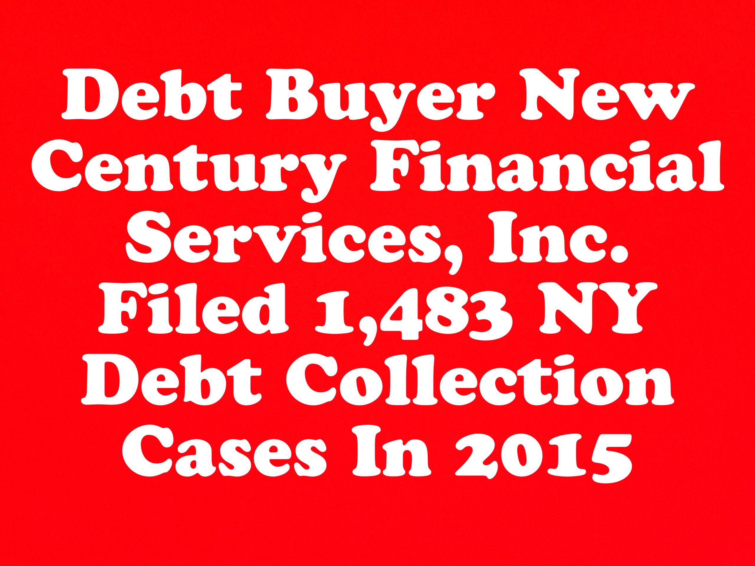 January 20, 2016January 20, 2016 Debt Buyer New Century Financial Services, Inc. Filed 1,483 NY Debt Collection Cases In 2015 By rnahoum
