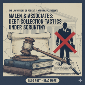 Malen & Associates PC is a New York-based debt collection law firm located in Westbury, New York focusing on creditor’s rights, debt collections, and bankruptcy. They specialize in debt collection and judgment enforcement.